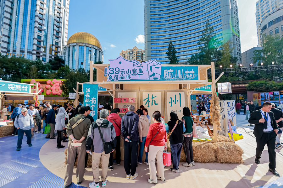 10月29日晚,由杭州市文化广电旅游局主办的“来杭州,感受‘深秋的富春山居图’”——杭州“三江两岸”(上海)推广活动在上海南京东路世纪广场启幕。活动现场设置“杭州三江两岸大地村集”,以“一村一集”的形式,将杭州“三江两岸”22个特色村落搬到上海市民眼前,零距离体验杭州乡村的烟火气。