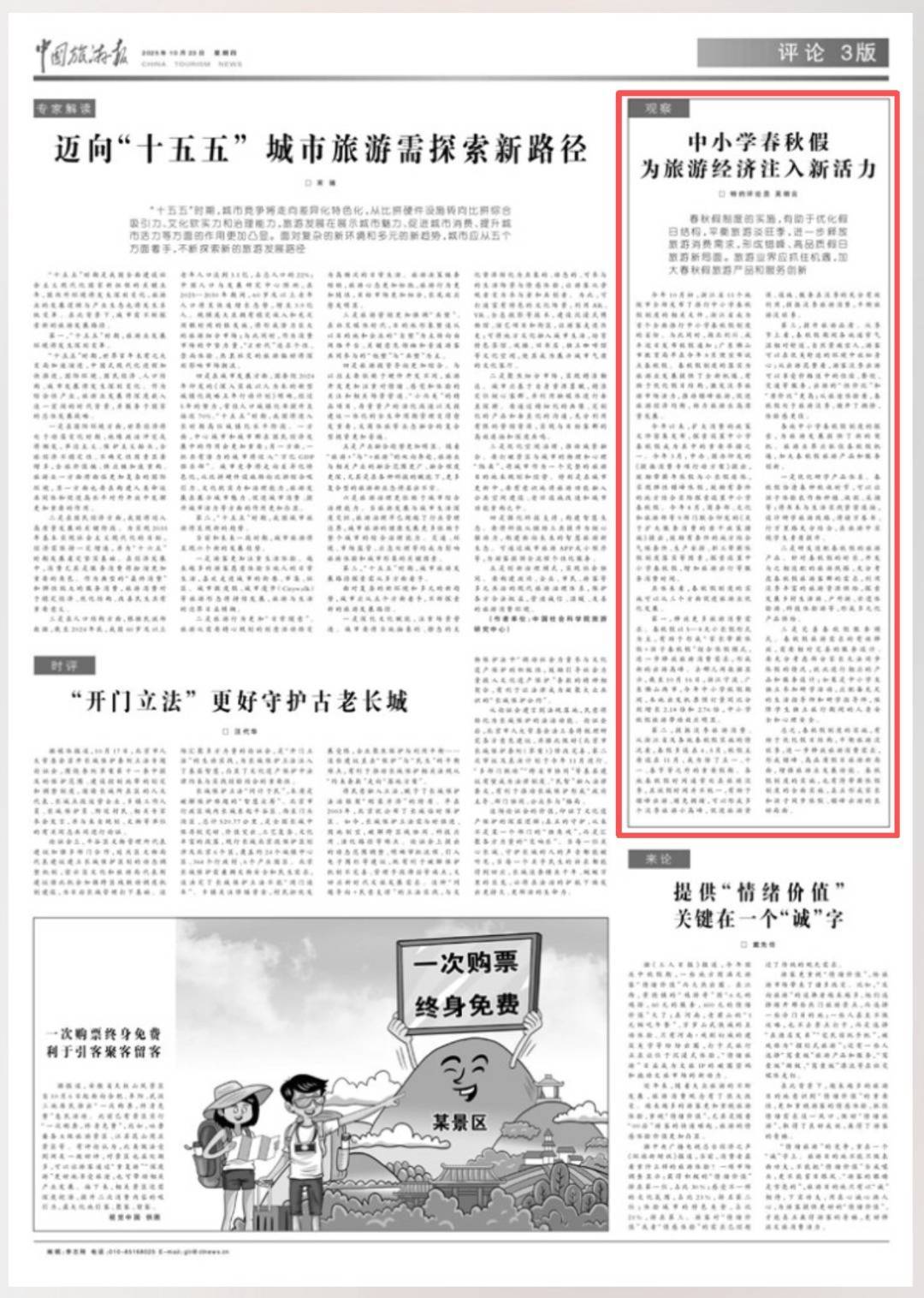 春秋假制度的实施,也有待带薪休假制度的全面实施,真正形成家长和孩子同步休假、错峰出游的良好局面。